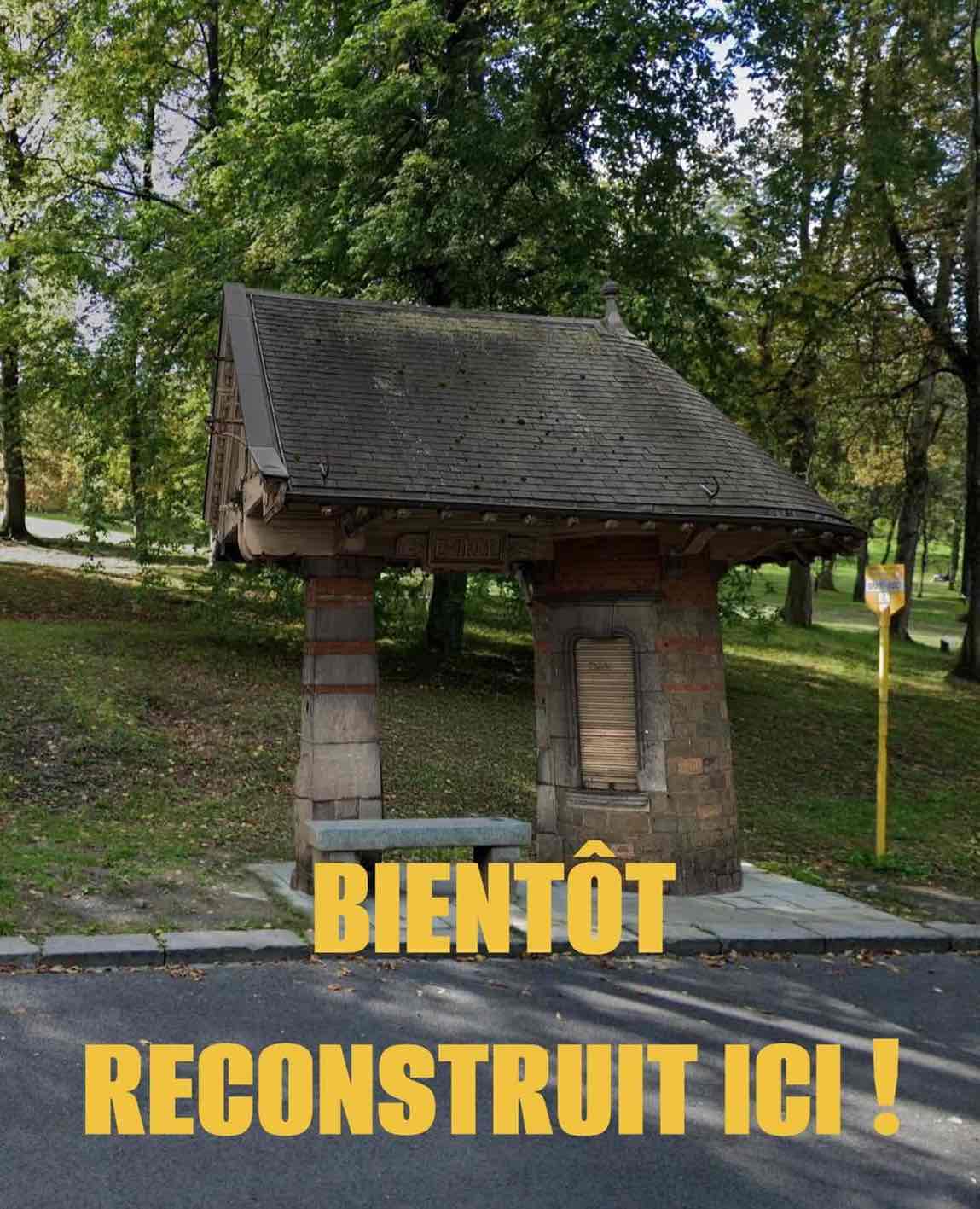 « ICI ! » … où ça ? Peut-être serait-ce « chez nous » ? À moins que l’adverbe soit à entendre comme un « là », désignant cet endroit de l’accotement où il remplace un abribus existant ? Un autre emplacement avait été désigné et accepté le 5 mai 2022, non loin mais sur un cheminement que le Pavillon d’Entrée aurait pu réactiver car délaissé. Ce choix était plus intéressant car il s’agissait d’une allée de l’extension de l’Arboretum du Palais forestier, quand a été construite la voirie desservant ce qui avait été la concession de Namur-Citadelle. Le site a d’ailleurs fait l’objet d’un plan de Georges Hobé. Cette option exigeait un plan d’abords reflétant une réflexion sur l’inscription dans le paysage d’un édicule tout sauf neutre. Le choix qui a prévalu court-circuite toute velléité d’aménagement en résonance avec l’esprit du travail de Georges Hobé vers 1910. Il prend désormais place sur le bas-côté du circuit des bus, et non sur une promenade à travers les arbres. En évitant cet « inconvénient », à savoir une étude d’architecte et/ou de paysagiste, la configuration tourne au ridicule ; le magnifique panneau sculpté « ENTRÉE » désigne désormais un talus. Ce pavillon n’a pas été pensé comme lieu d’attente. Georges Hobé a imaginé des abris dotés de bancs pour Bouillon ou Spa, par exemple, le long de lignes vicinales, même pour Namur puisqu’un premier projet, dans une autre implantation, devait combiner une halte sur la ligne vers Wépion et un guichet pour le nouveau Kursaal, avec locaux servants, le tout sous une toiture en harmonie avec ce Kursaal. Le programme de celui qui a été construit, réduit à sa plus simple expression, ne commandant que le passage, est donc intégralement nié. Il a été dessiné pour ponctuer un cheminement dans un ensemble urbain d’ampleur, composé de plusieurs types d’espaces publics dont il assurait l’articulation, subtilement incorporé à la clôture du nouveau Kursaal, pour y donner accès, avec à la clé une perspective ne manquant pas d’allure. Le jardin face au pont de Jambes et le Promenoir de Meuse étaient ainsi reliés à ce nouvel équipement de loisirs, pour former un ensemble unique en lieu et place du square Baron qui avait pris la place de l’ancienne Porte de La Plante. Ces trois phases de l’évolution urbaine ont d’ailleurs donné à ce petit pavillon une charge historique non négligeable. D’une certaine manière, il est lié aux grandes transformations des abords de la ville, dans la conversion du militaire au civil, ce qui permettait d’espérer qu’il en aille de même pour sa réédification. Cette dimension a été gommée dans la précipitation qui a conduit à l’affectation en abribus LETEC, procédure sans permis, en lui assignant par contre la fonction qui n’avait pas été retenue à l’origine. Du révisionnisme ? La disparition du jardin du nouveau Kursaal avait ravalé le Pavillon d’Entrée au rang de support d’enseigne lumineuse devant un parking aménagé sans égards pour l’architecture de Hobé. Aujourd’hui, cet endroit accueille un autre parking, à deux niveaux masqués côté Promenoir de Meuse par un voile de béton… « verdurisé » au moyen d’une « végétation » en matière plastique. Pas mieux. Cette opération menée en parallèle aux extensions du Casino, phagocytant le Kursaal de Hobé, impliquait la suppression du pavillon plus que centenaire, dès lors compté dans le volume des démolitions, c’est-à-dire noyé dans la masse de tout ce qui devait disparaître. La suite à partir de 2019 figure dans le narratif collé à l’abribus, puisque la Ville rafle la mise en s’attribuant la com ; un bel oxymore circule : « style mosan moderniste ». Le Pavillon d’Entrée est privé du magnifique pilastre qui délimitait le passage carrossable mais il est doté d’un banc en faux-vieux venu de nulle part… Il est peut-être utile de rappeler que la chose a été possible parce que les périmètres de classement comme sites, celui de la Citadelle et celui du pont de Jambes, jointifs sur l’axe longitudinal du pavillon de 1910, avaient été tracés de manière à l’exclure des deux ! Une autre manœuvre d’évitement semble donc aller de soi aujourd’hui, à l’encontre cette fois des principes de base de l’architecture de Georges Hobé dans ses relations au paysage. Bref, il est garé d’une manière qui escamote tout effort d’explicitation des arguments ayant conduit à son transfert, d’un endroit précis à un autre qui aurait dû l’être, documents historiques à l’appui. L’emplacement bis adopté positionne le Pavillon par lequel on n’entre plus nulle part… un peu plus près du double Pavillon d’Entrée au sommet du Théâtre en plein air — dont on s’obstine à verduriser l’appellation —, ce qui rend la comparaison assez terrible pour l’abribus. L’ampleur et l’élégance de cet accès aux gradins et aux passages latéraux, avec un subtil traitement des transitions et des ruptures d’échelle entre la voirie de desserte (alors dotée d’un tramway) et l’espace-temps privilégié des spectacles est un petit chef-d’œuvre, comme l’était le Pavillon d’Entrée du nouveau Kursaal avant l’empire du tout à la bagnole. Hélas, cette implacable confrontation est sans appel… le transplanté devenu un sordide contre-exemple s’ajoutant à la liste des bévues infligées à l’héritage de Hobé à Namur, au petit jeu des amputations et des greffes pas trop regardantes, frappées d’amnésie et indifférentes à ce que signifie, prise à la lettre, l’expression « à l’identique »…